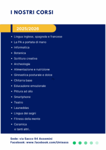 Con questa iniziativa, l’Università della Terza Età e il Comune di Assemini confermano il proprio impegno nel promuovere la partecipazione attiva e l’apprendimento permanente, valorizzando la cultura come bene comune e occasione di incontro tra generazioni.